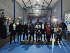 Aydemir, Kurt Otağı Spor Salonu’nda güreş ve boks branşlarında eğitim alan gençlerle vakit geçirerek, spora ve gençliğe verilen desteğin altını çizdi.