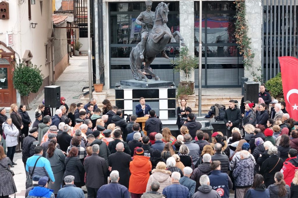 Sındırgı’da yaşanan depremlerde iş yerleri zarar gören esnafın ekonomik yükünü azaltmak için düzenlenen “Sındırgı Esnafına Destek Alışverişi” etkinliğinde konuşan Balıkesir Büyükşehir Belediye Başkanı Ahmet Akın, deprem gerçeğinin asla unutulmaması gerektiğini belirtirken “Afetlere karşı güçlü olmanın yolu günü kurtarmakla değil, doğru hazırlıkla mümkündür. Biliyoruz ki en güçlü yapı dayanışmadır. En sağlam zemin birliktir. Kuvayımilliye ruhuyla Sındırgılı hemşehrilerimizin yaralarını saracağız.” dedi.
