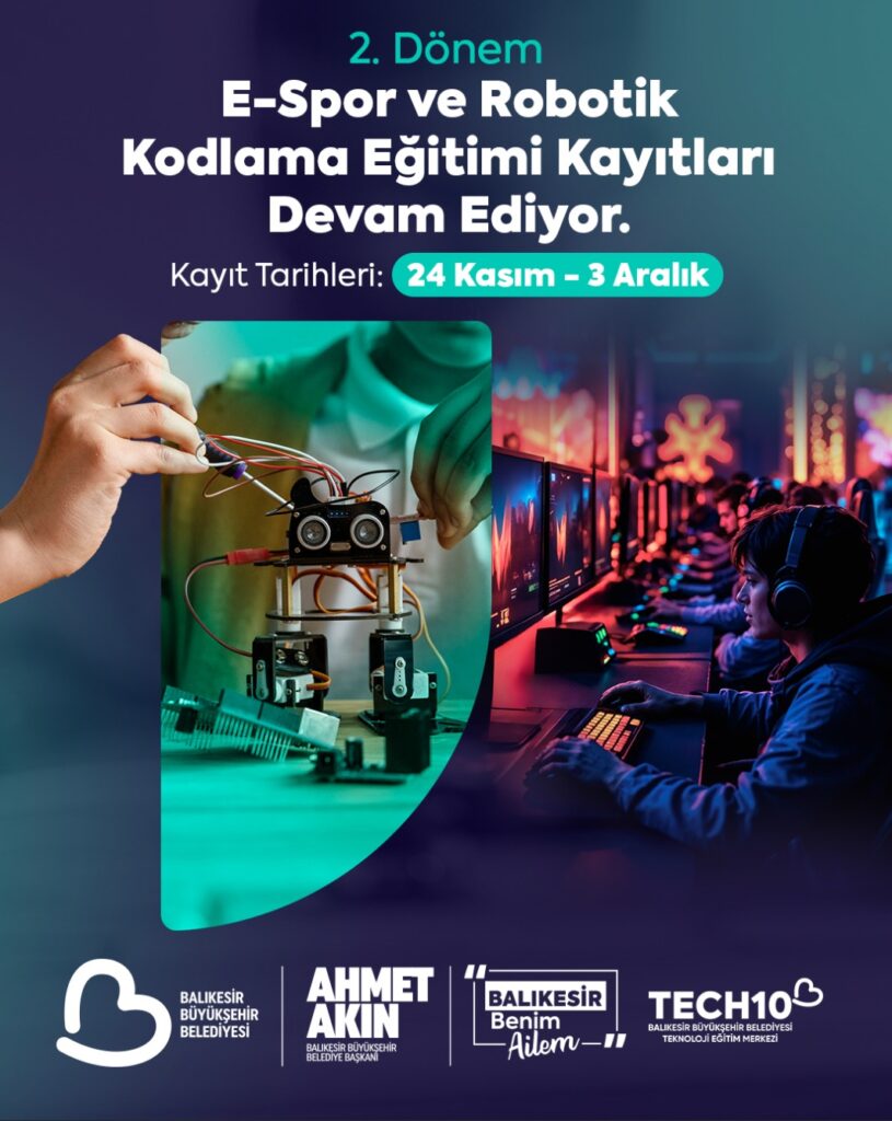 Balıkesir Büyükşehir Belediyesi’nin, gençlerin teknoloji alanında ilerleyebilmesi için hayata geçirdiği Tech10 Teknoloji Merkezi yeni dönem eğitimleri ile gençleri eğitmeye hazırlanıyor. E-spor ve robotik kodlama eğitimleri ile teknolojik gelişmelere ayak uydurması sağlanan gençler, geleceğe yön vermeye devam ediyor. 24 Kasım’da başlayan başvurular 3 Aralık’a kadar devam edecek.
