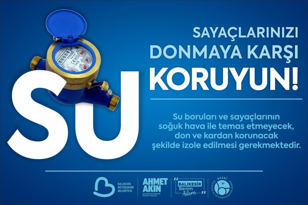 Balıkesir Büyükşehir Belediyesine bağlı Balıkesir Su ve Kanalizasyon İdaresi (BASKİ) Genel Müdürlüğü, su boruları ve sayaçlarının soğuk hava ile temas etmeyecek, don ve kardan korunacak şekilde izole edilmesi gerektiğini vurguladı. Bazı abonelerin donan sayaç ve borulara sıcak su ya da ateşle müdahale ettiğini, bunun sayaçlara ciddi zarar vererek kullanılamaz hale getirdiğini belirten BASKİ, bu tür müdahalelerin kesinlikle yapılmaması gerektiğine dikkat çekti.