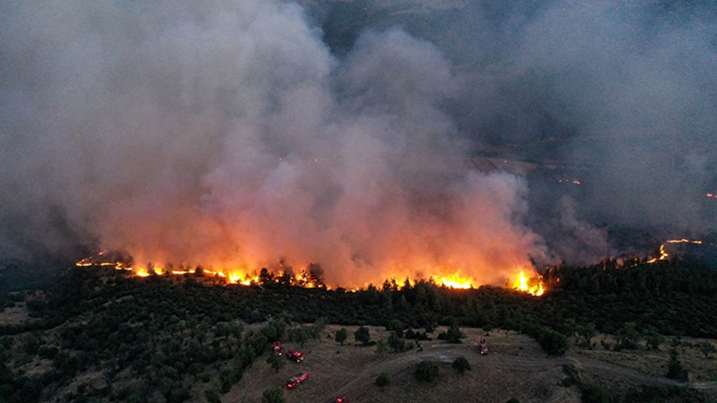 Dursunbey’in Bayıryüzügüney ve Adaören ile Bursa/Büyükorhan’ın Mazlumlar köylerini etkileyen yangının başlangıç anı kameralara böyle yansıdı.