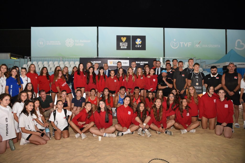 Balıkesir Büyükşehir Belediyesi Spor ve Gençlik Hizmetleri Daire Başkanı Uğur Baysal, “Bu yıl 3’ncüsünü düzenlemiş olduğumuz 2025 Plaj Voleybolu Dünya Turu etabına Ayvalık’ta ev sahipliği yapmakta olup bugün Ayvalıklı genç sporcularımızı ve antrenörlerimizi de aramızda görmekten dolayı mutluluk duydum. Ben bu turnuvalarda federasyonumuza ve Ahmet Akın Başkan’ımıza bizlere sağlamış oldukları konfor ortamı ve imkânlarından dolayı teşekkür ediyorum. Bizler, Ahmet Başkan’ımızın göreve geldiği ilk gün itibarıyla bizlere vermiş olduğu görev doğrultusunda Balıkesir’i bir spor kenti yapma hedefi doğrultusunda ekip arkadaşlarımızla ve diğer daire başkanlarımızla güzel bir koordinasyon içerisinde bu tarz turnuvaları şehrimize alarak, ev sahipliğini gerçekleştirmekteyiz. Ben 20 ilçemizde ilçe kriterlerine göre spor organizasyonlarını planlayarak şehrimizde değerli sporcuları, kafileleri ve ekipleri misafir etmekten dolayı gurur duyuyorum. Şu an burada misafir etmekte olduğumuz yaklaşık 30 ülkeden 56 takımın kıyasıya mücadele sergileyeceği bir turnuvanın meşalesini yakacağız. Ben turnuvaya katılan tüm antrenör ve sporcu kardeşlerimin kazasız belasız, sakatlanmadan güzel maçlar temenni ediyor, sizlere Başkanımız Ahmet Akın’ın selamlarını iletiyorum.” ifadelerini kullandı.