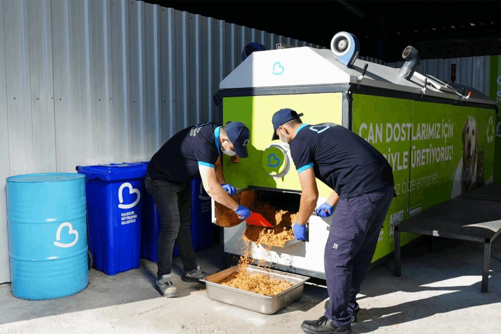 Balıkesir’de yaşayan can dostların yaşam kalitesini yükseltmeye yönelik örnek projeler hayata geçiren Balıkesir Büyükşehir Belediyesi, yeni hayata geçirdiği mama üretim merkezinde iş yerleri, işletmeler ve kurumlardan toplanan yemekleri geri dönüştürerek sağlıklı mamalar elde ediyor.