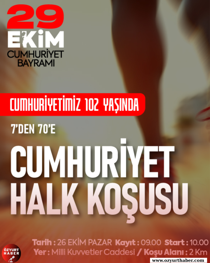 Balıkesir Büyükşehir Belediyesinin, bu yıl 7’den 70’e bütün hemşehrileriyle birlikte gerçekleştireceği Cumhuriyet Koşusu 26 Ekim Pazar günü saat 10.00’da meydana gelecek. Koşuya katılmak isteyen vatandaşlar, Cumhuriyet Koşusu için koşu günü saat 9.00’a kadar başvuru yapılabilecek. Milli Kuvvetler Caddesi’nden başlayacak olan koşu, Cumhuriyet Meydanında sona erecek. Her yaştan vatandaşın katılımına açık olacak olan koşunun uzunluğu ise 2 km olarak belirlendi. Saat 10.00’da kayıtların sona ermesi ile başlayacak olan koşuda dereceye girenlere ödülleri takdim edilecek. Ödül töreni ise koşu sonrası 26 Ekim Pazar günü Cumhuriyet Meydanı’nda gerçekleştirilecek. Bütün vatandaşların davetli olduğu koşuya ilginin yoğun olması bekleniyor.