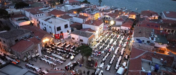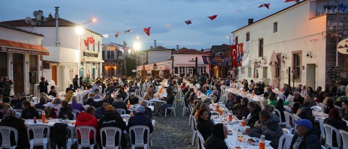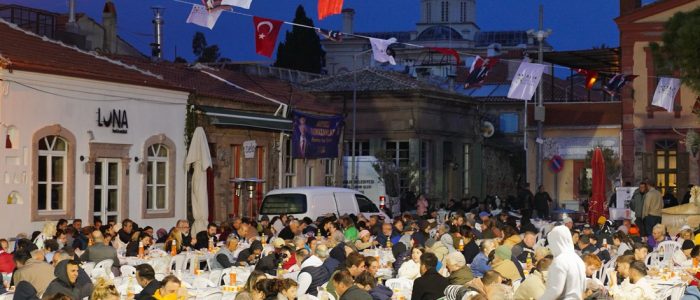 Ayvalık Belediyesi ev sahipliğinde, Cunda (Alibey) adasında düzenlenen iftar sofrasına, adada yaşayan binlerce vatandaş katıldı.