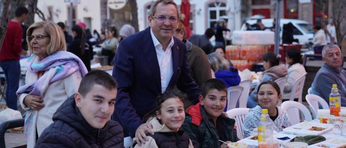 Ayvalık Belediye Başkanı Mesut Ergin, “Alibey (Cunda) Adamızın Pazar Meydanı’ndaki iftar yemeğimizde binlerce hemşehrimiz ile aynı sofrada bereketi ve huzuru paylaştık. Mübarek Ramazan Ayı’nın bolluğu hanemize, hoşgörüsü gönüllerimize dolsun.  Her lokmamızı paylaşacağımız daha nice Ramazan sofralarında buluşmak dileğiyle… Birlik, beraberlik ve dayanışma ile Ayvalık Kadar Güzeliz” diye konuştu.