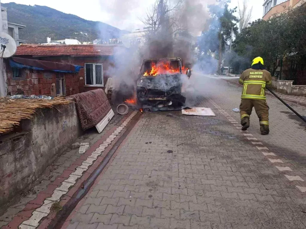 Balıkesir’in Edremit ilçesinde, park halindeki bir kamyonet yangın çıkardı. İtfaiye ekipleri yangını kısa sürede söndürdü, ancak araçta büyük maddi hasar oluştu.