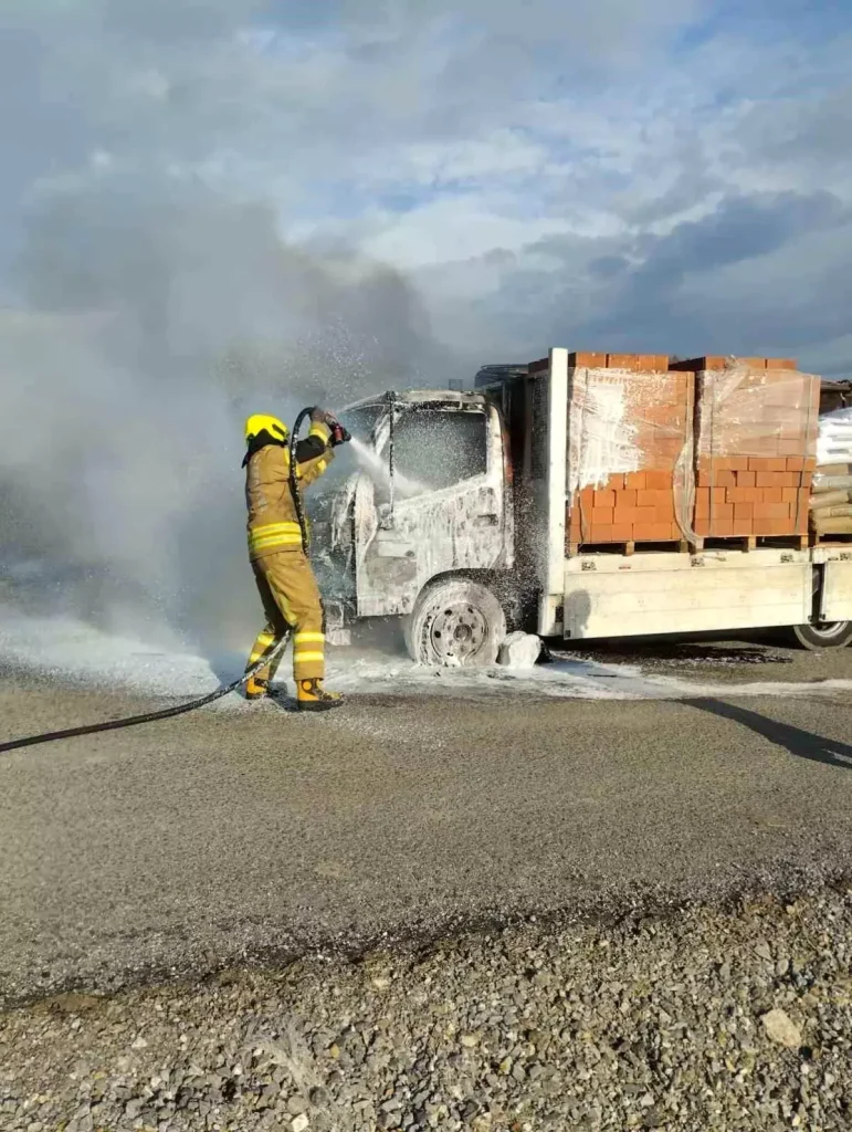 Edinilen bilgiye göre, inşaat malzemesi yüklü 16 ADM 499 plakalı kamyon, Yeni Mahalle Günaydın Caddesi’nde, seyir halindeyken motor kısmından yanmaya başladı. Çevrede bulunan vatandaşlar durumu fark ederek 112 Acil Çağrı Merkezine bilgi verdi. Balıkesir Büyükşehir Belediyesi Bandırma İtfaiye ekipleri olay yerine hızla intikal ederek yangına müdahale etti. Yangın sırasında şans eseri herhangi bir yaralanma veya can kaybı yaşanmazken, kamyonda ciddi maddi hasar meydana geldi. Yangının çıkış nedeni ise ekipler tarafından araştırılıyor.